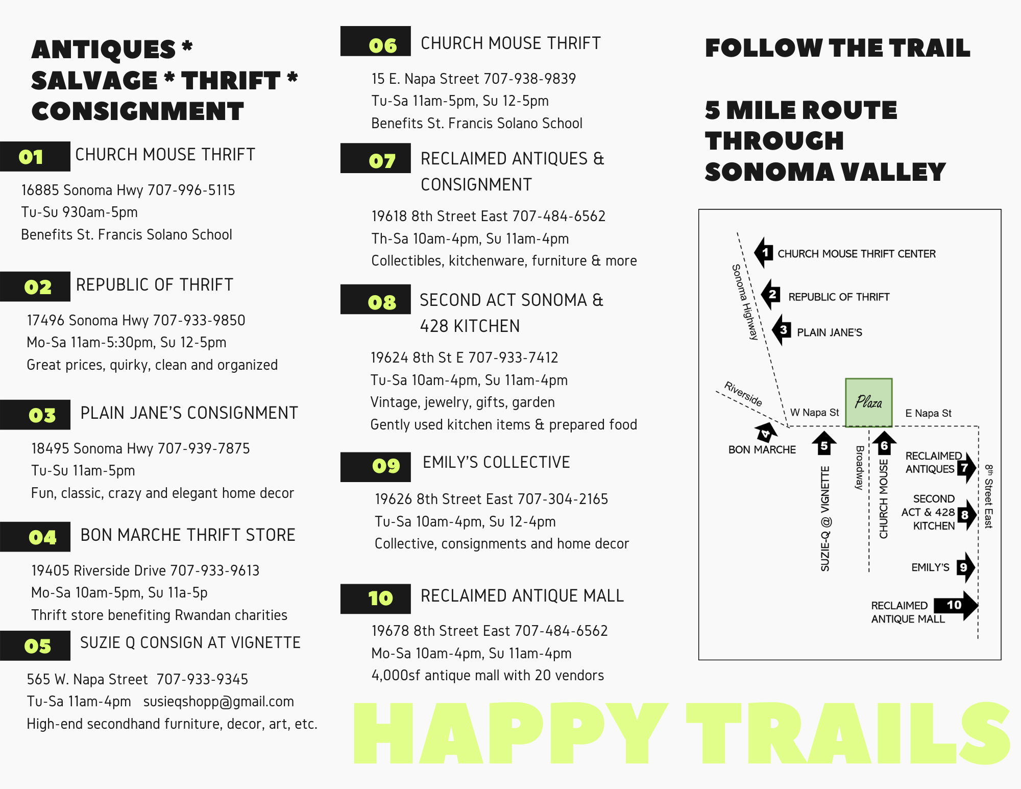 Take the Sonoma Resale Trail! The Valley of the Moon, a destination for stunning scenery, wine, food…and second hand shopping! Stores range in specialties and pricing, but all are full of delightful surprises for the savvy treasure hunter. Hit the Resale Trail today!