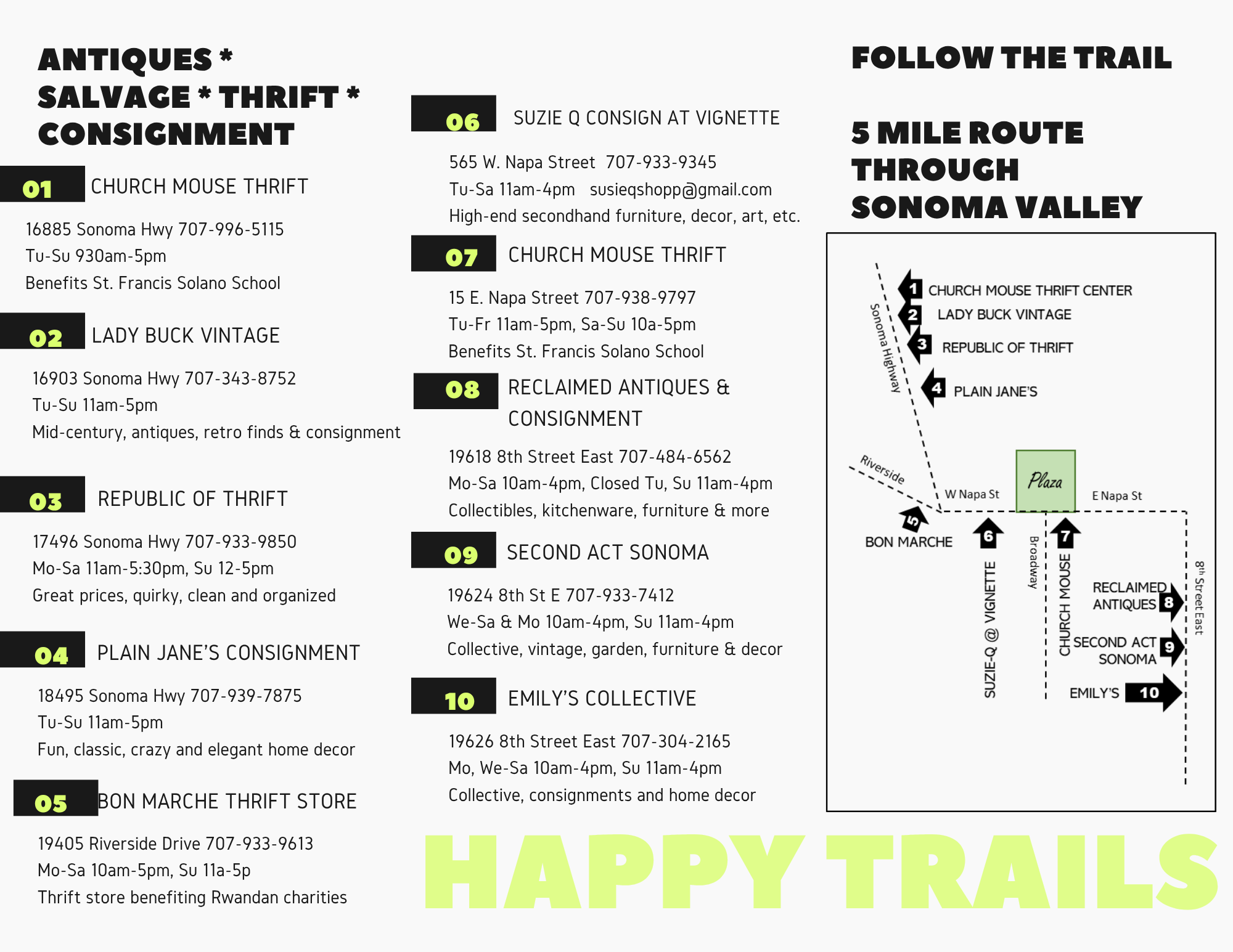 Take the Sonoma Resale Trail! The Valley of the Moon, a destination for stunning scenery, wine, food…and second hand shopping! Stores range in specialties and pricing, but all are full of delightful surprises for the savvy treasure hunter. Hit the Resale Trail today!